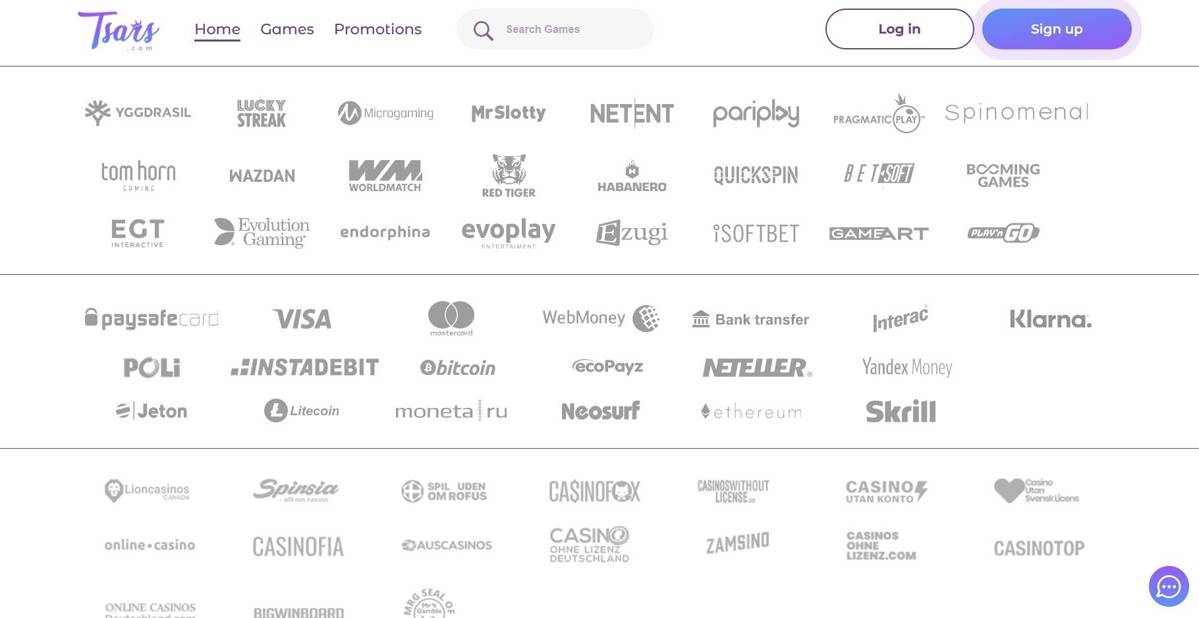 | Slot Studios | Netent, Microgaming, RelaXGaming, Pragmatic, BigTimeGaming, Yggdrasil, Blueprint, Thunderkick, Spinomenal, Playngo, 1x2 gaming, NolimitCity, PG Soft, Habanero, World Match, Elk Studios, TrueLab, Booming Games, Playson, High 5 Games, Bgaming, Amatic, Betsoft, Fantasma, Gamomat, Stakelogic, Evoplay, RedTiger, Hacksaw, ReelPlay, Swintt | |