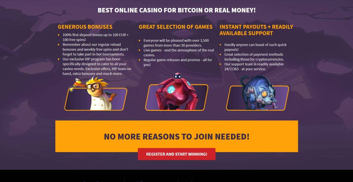 | Deposit options | Bitcoin, Visa, Mastercard, Skrill, Neteller, Ecopayz, Maestro, Paysafecard, Neosurf, Zimpler, Bank Transfer, Webmoney, Svayznoy, Yandex, Qiwi, Alfa-click, Instadebit | |