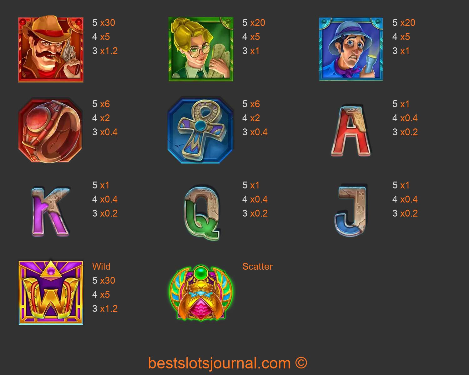 10 Pharaohs Paytable