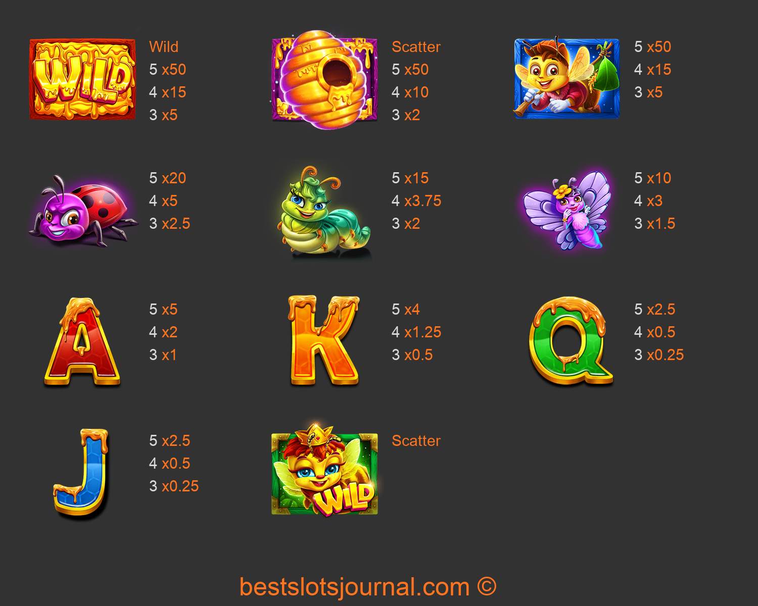 3 Buzzing Wilds Paytable