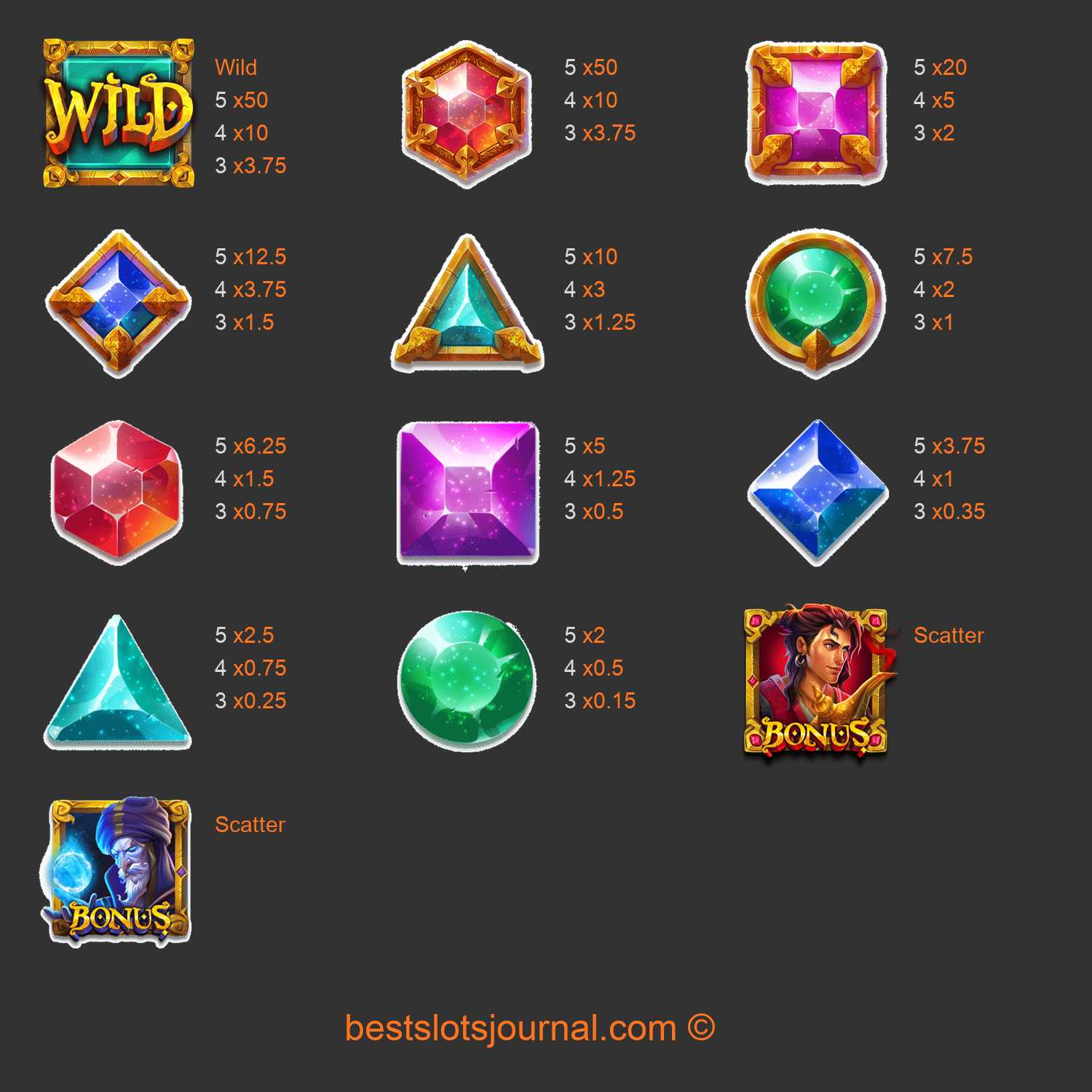 Aladdin and the Sorcerer Paytable
