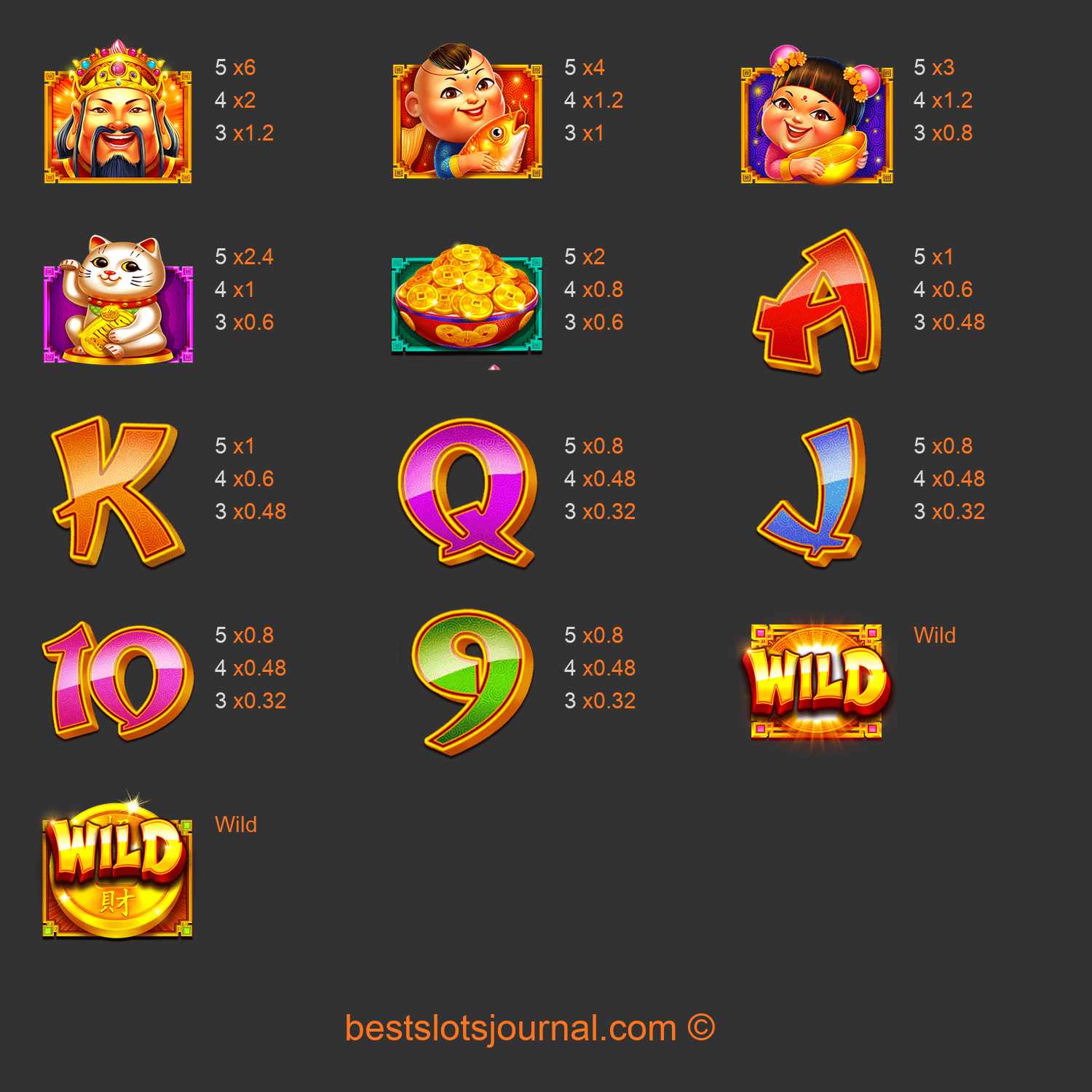 Caishen's Cash Paytable