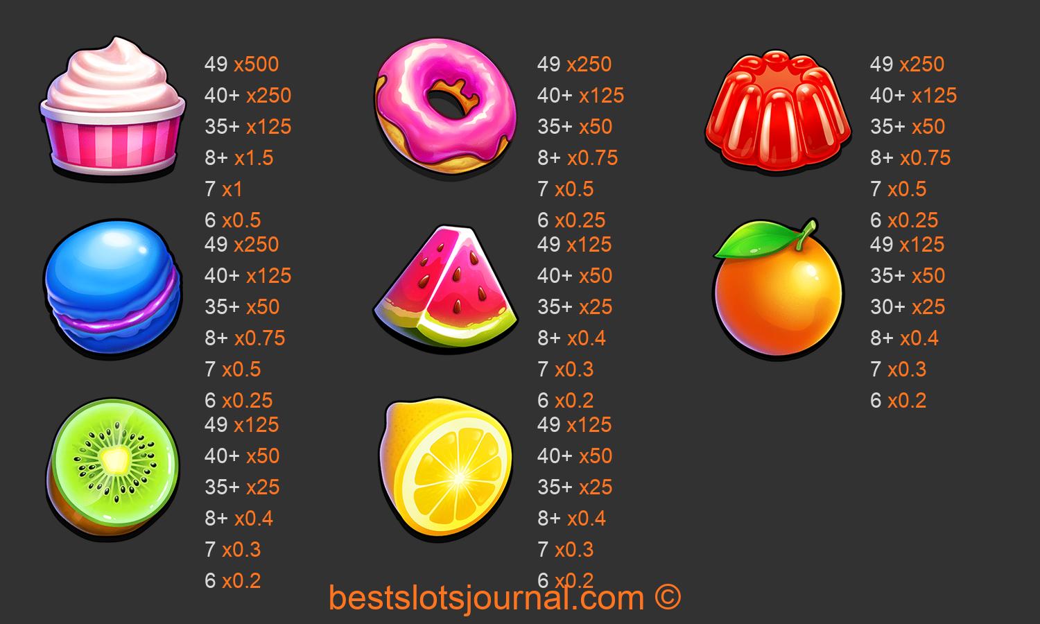 Candy Jar Clusters Paytable