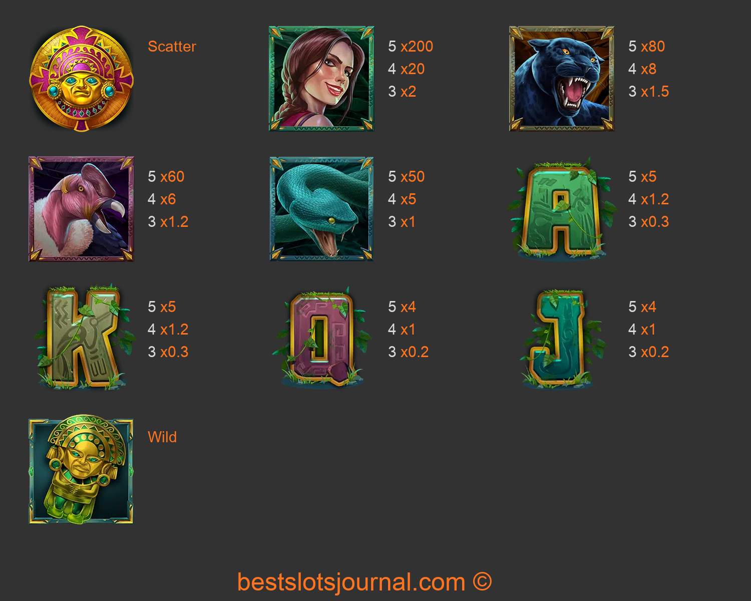 Cat Wilde and the Incan Quest Paytable
