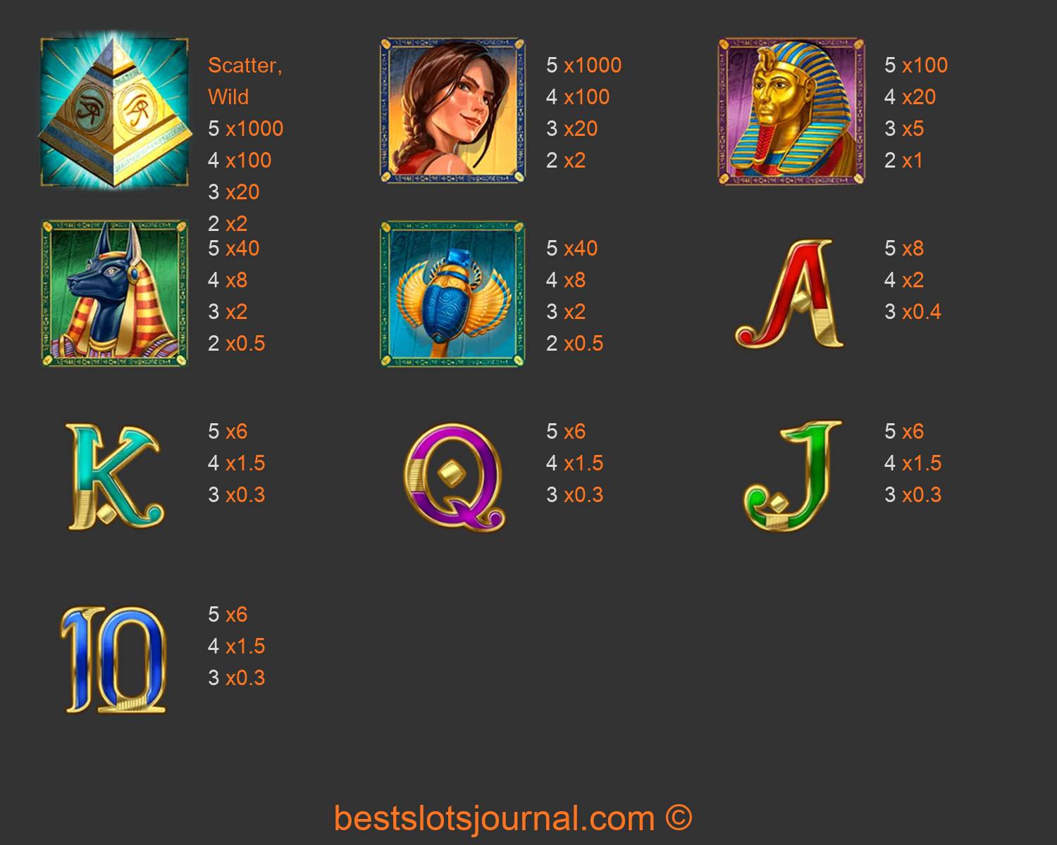 Cat Wilde and the Pyramids of Dead Paytable
