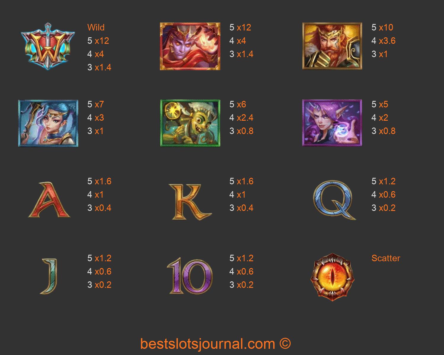 Champions of Mithrune Paytable
