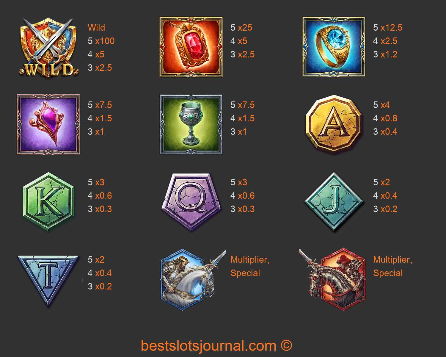 Clash of Camelot Paytable