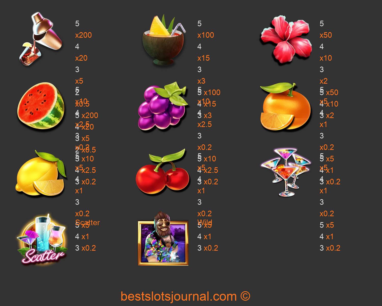 Club Tropicana - Happy Hour Paytable