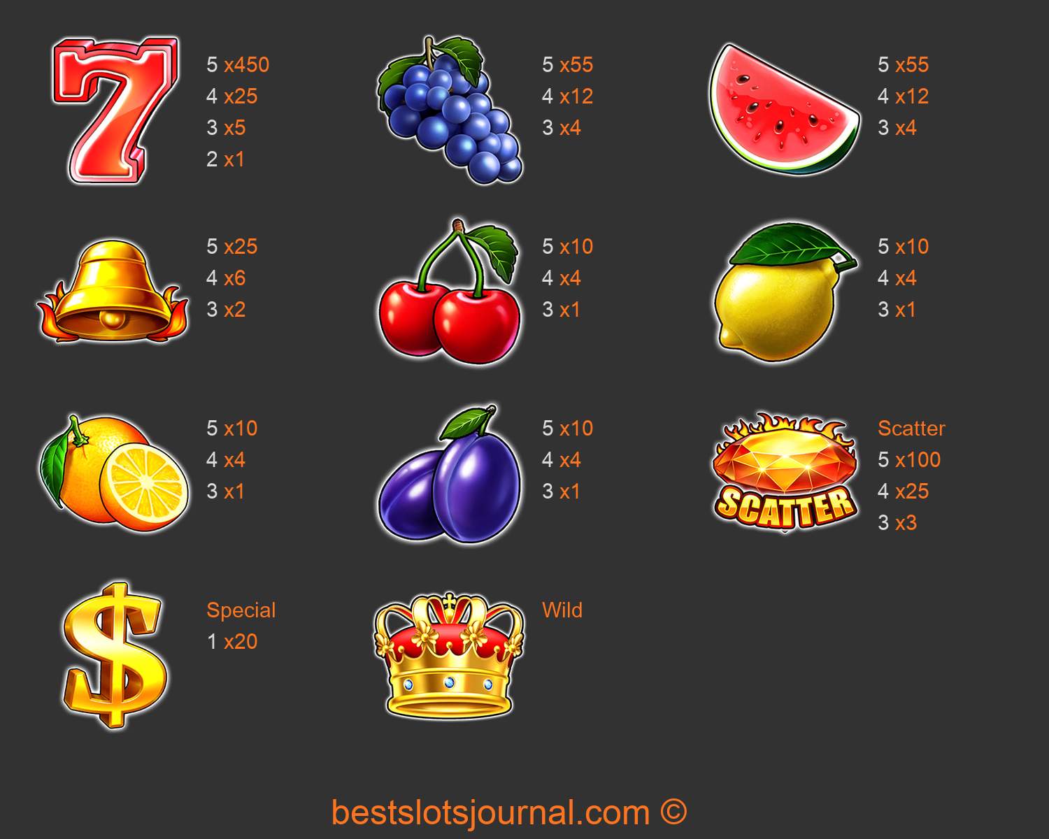 Crown of Fire Paytable