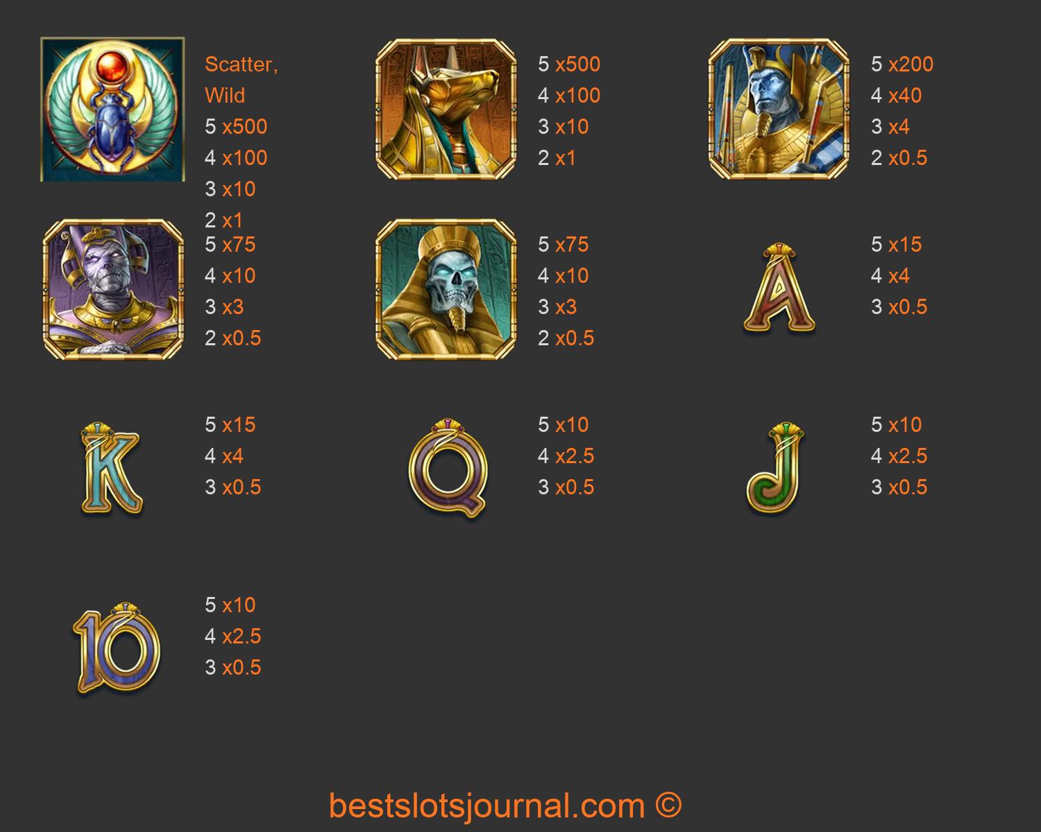 Doom of Egypt Paytable
