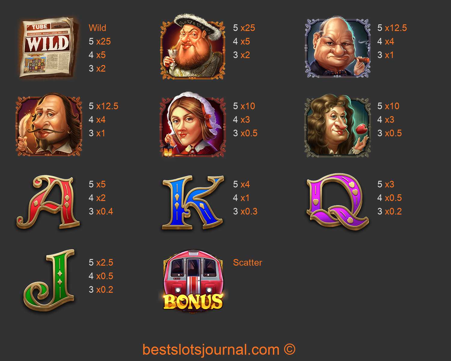 Down the Rails Paytable