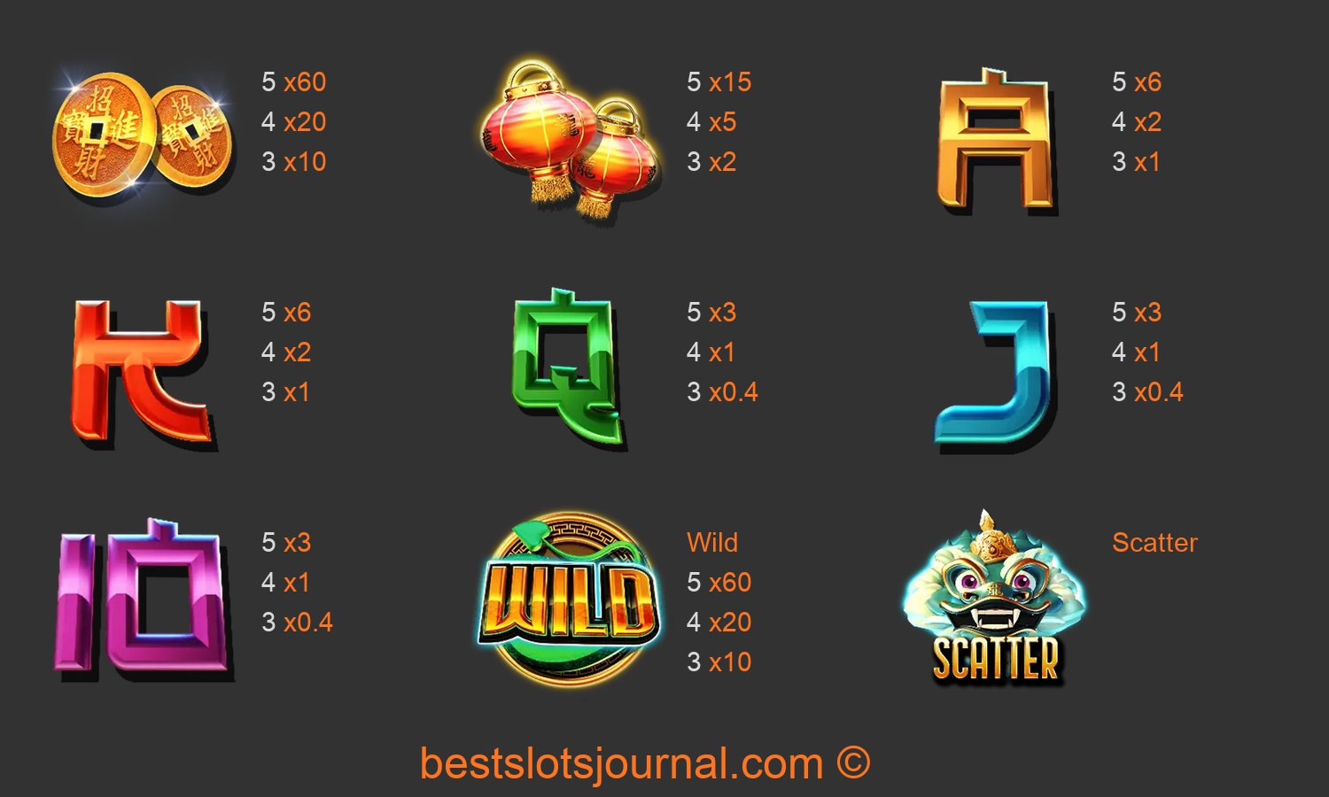 Dragon King Hot Pots Paytable