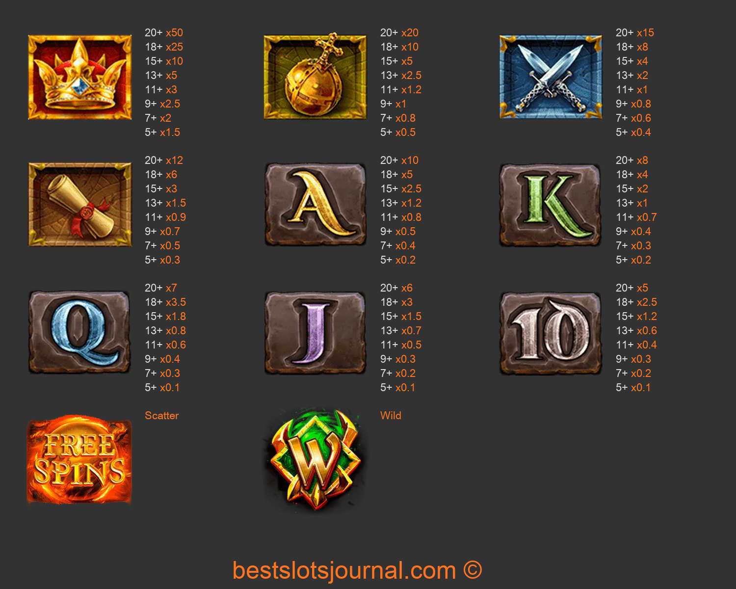 Dragons Clusterbuster Paytable