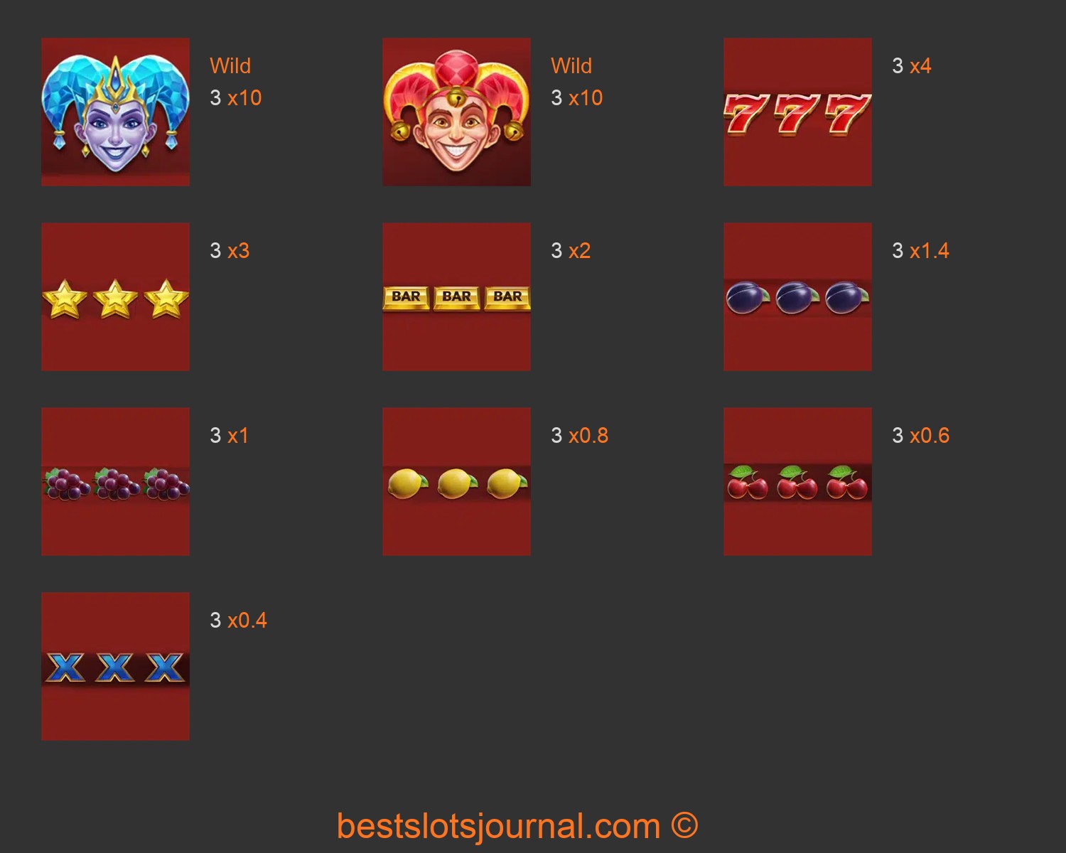 Fire Joker Freeze Paytable