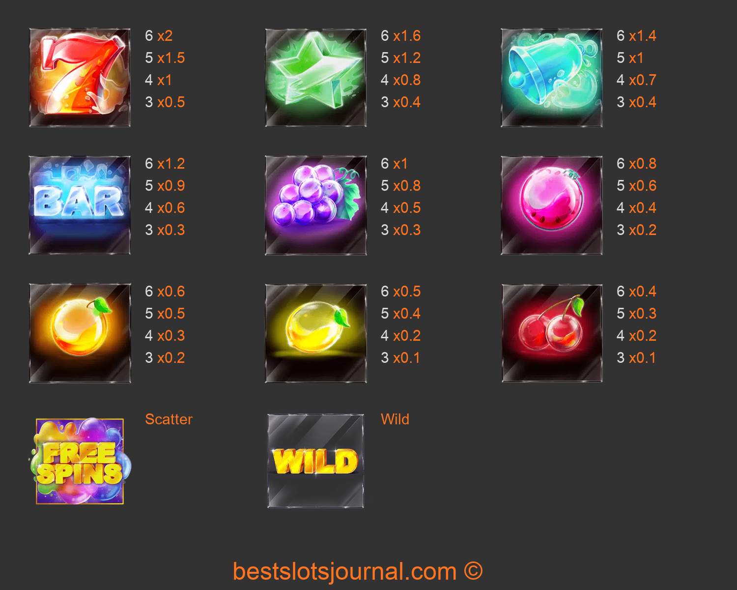 Fruit Blox Paytable