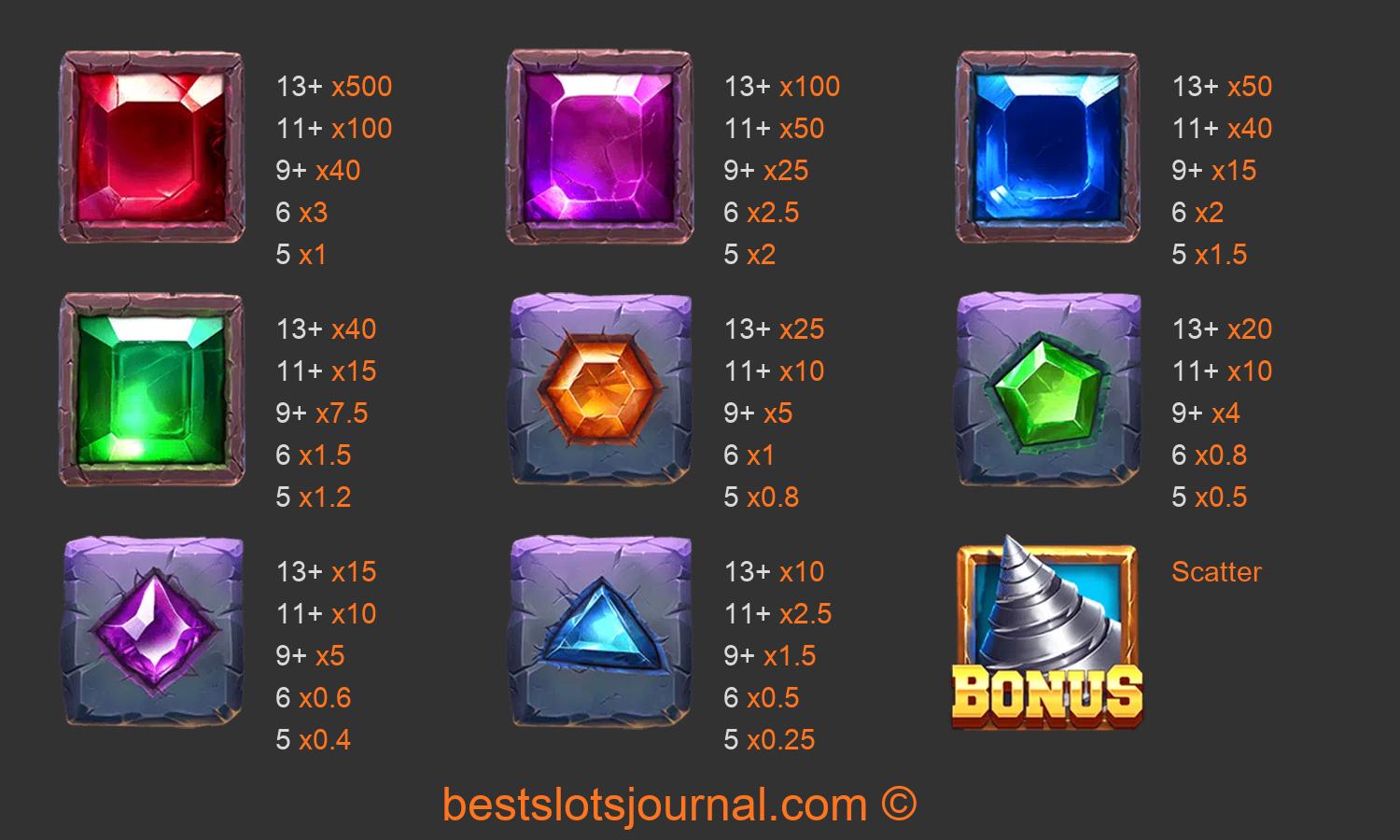 Gem Elevator Paytable