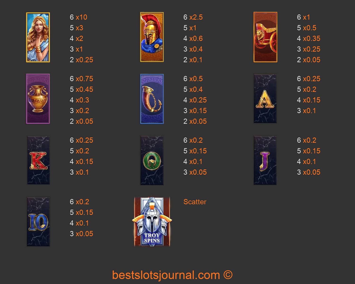 Gods Of Troy Megaways Paytable