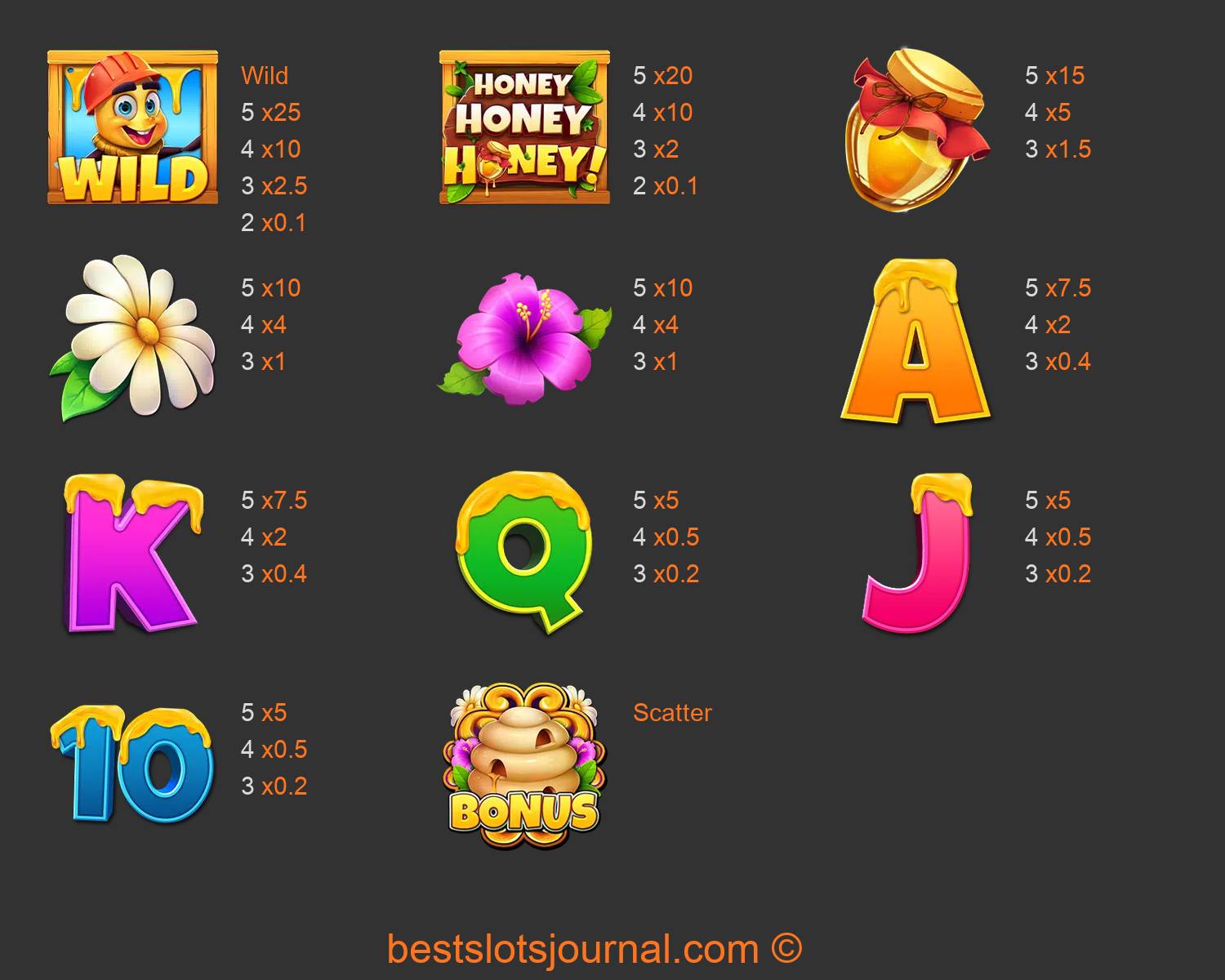 Honey Honey Honey Paytable