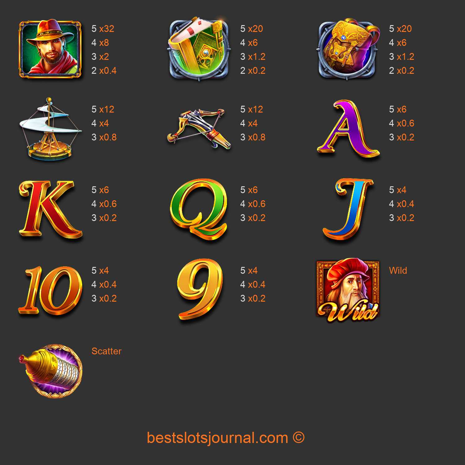 John Hunter and the Secrets of Da Vinci's Treasure Paytable