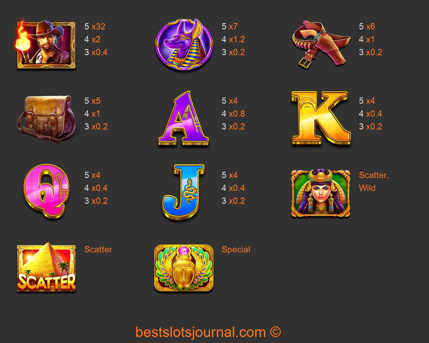 John Hunter and the Tomb of the Scarab Queen Paytable