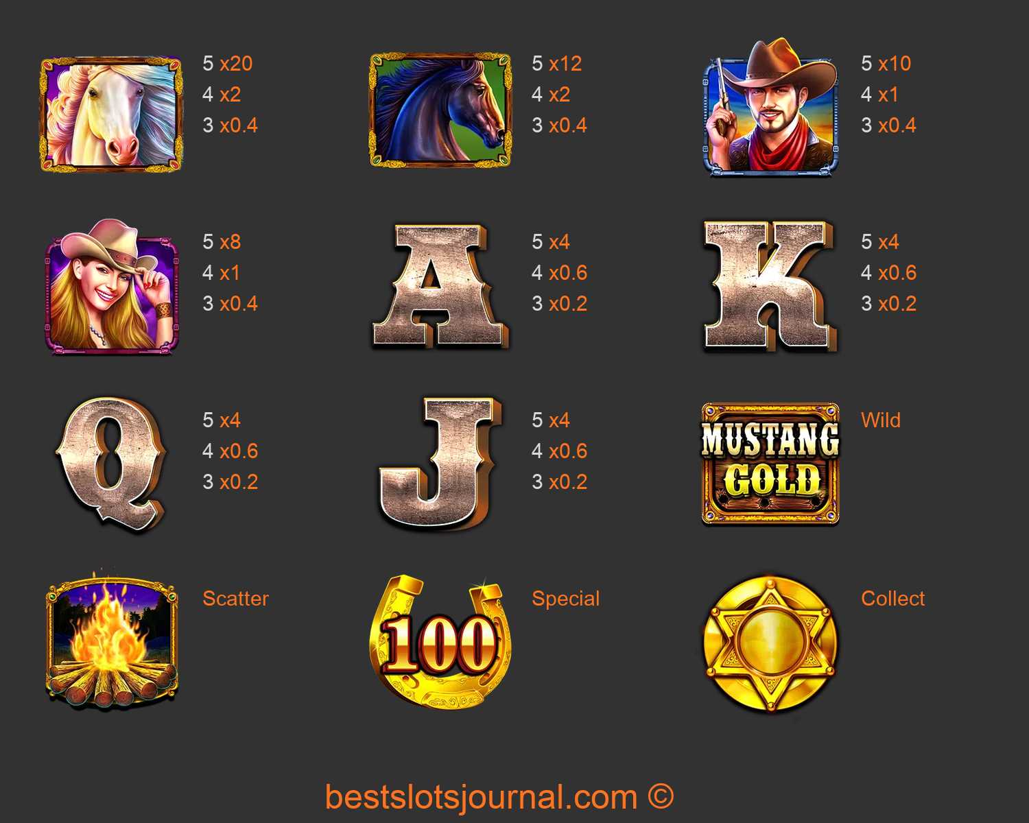 Mustang Gold Paytable
