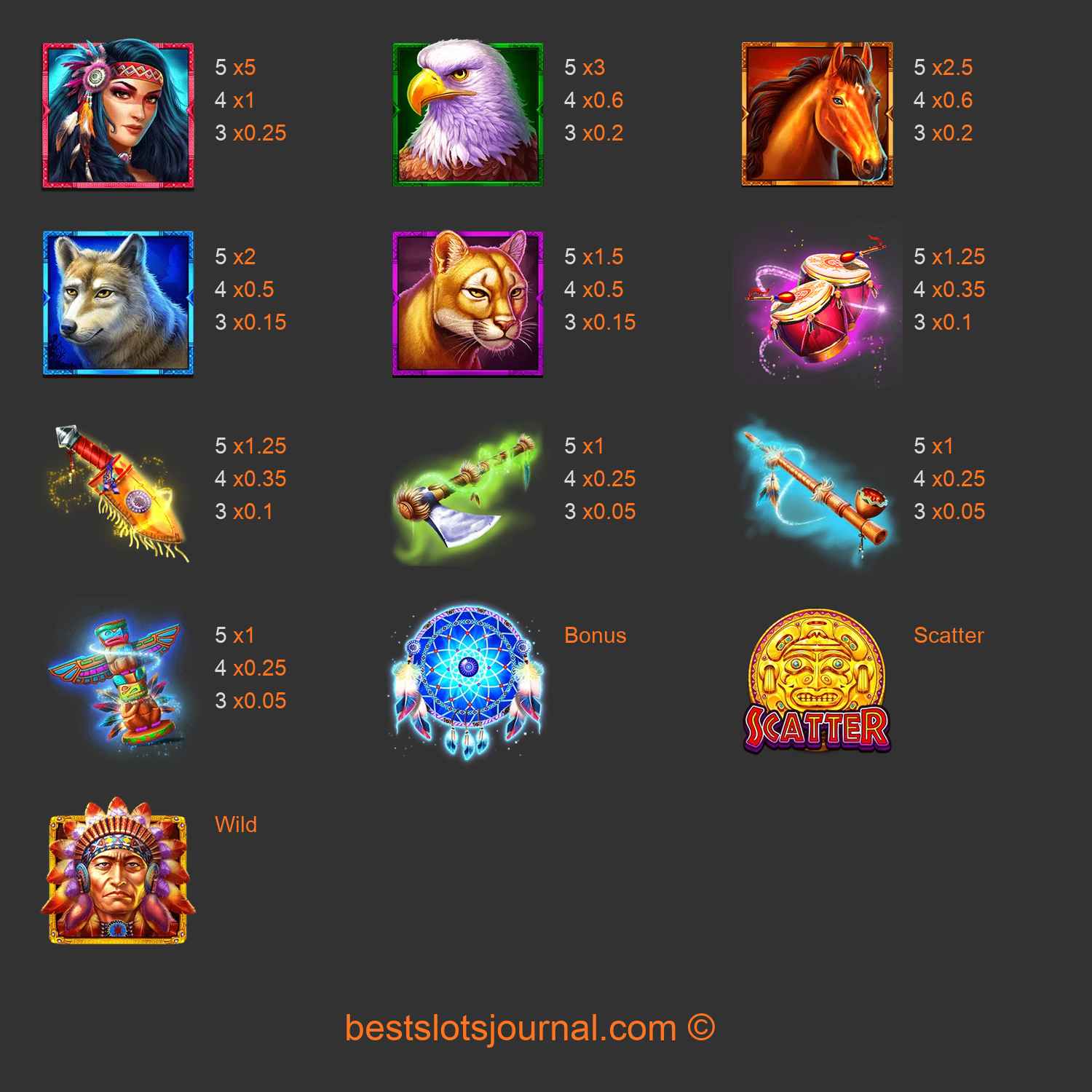 Mystic Chief Paytable