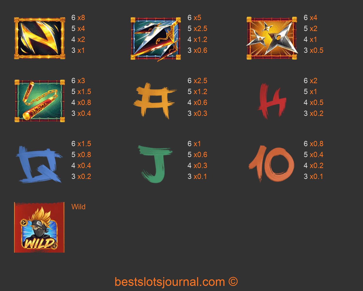Ninja Ways Paytable