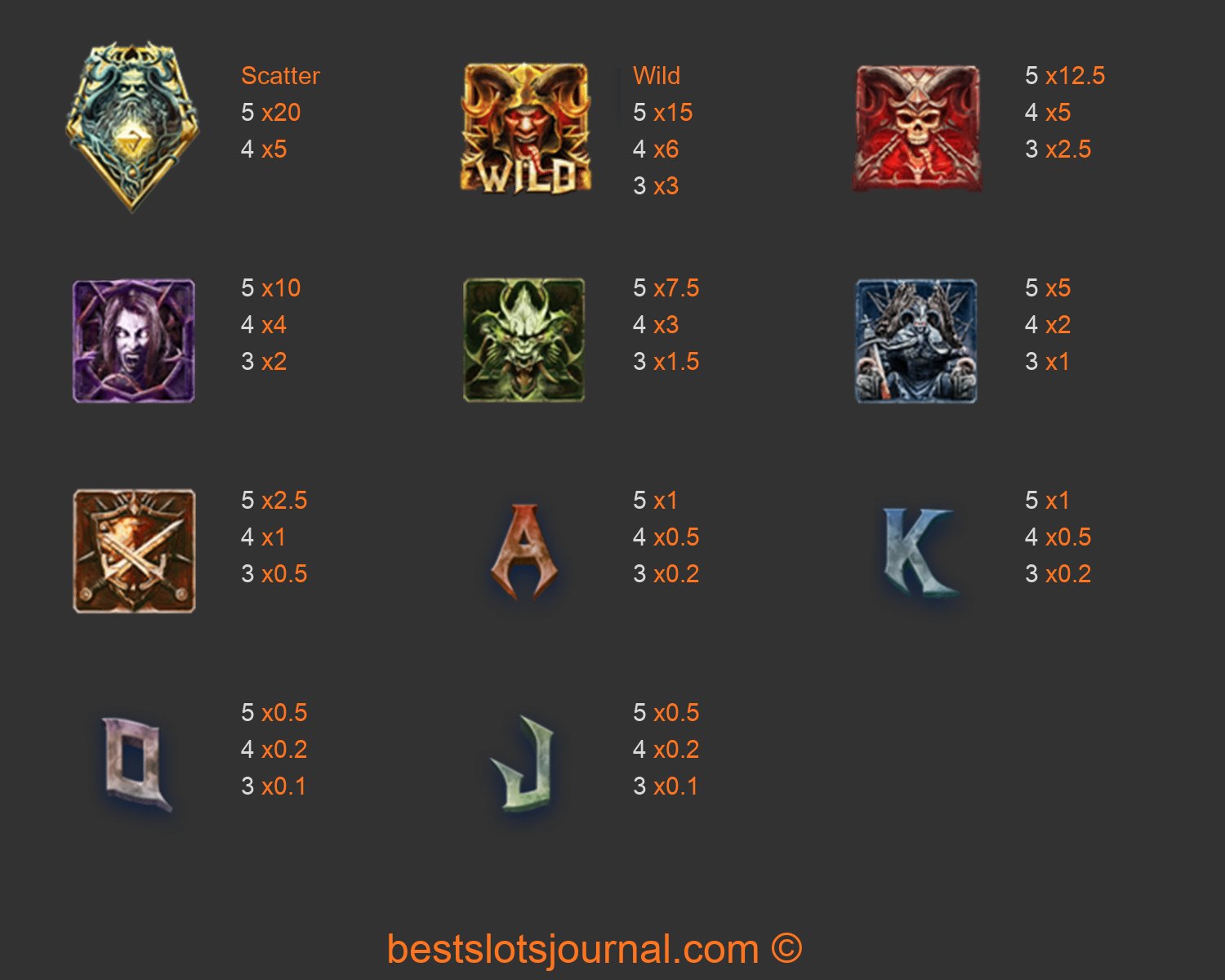 Testament Paytable