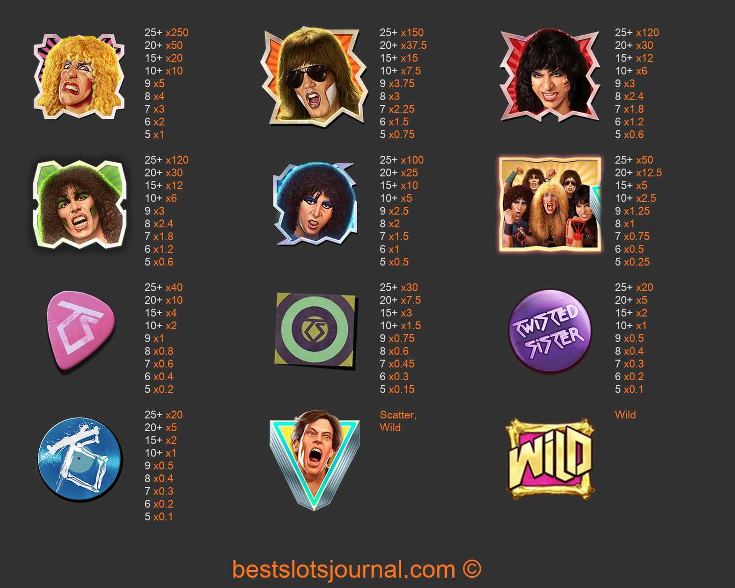 Twisted Sister Paytable